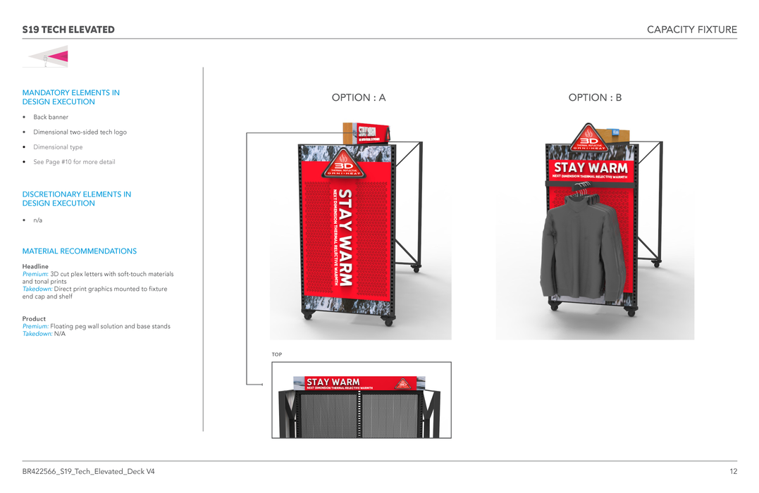 Technology retail refresh to communicate Warm, Dry, Cool, and Protected categories of product.